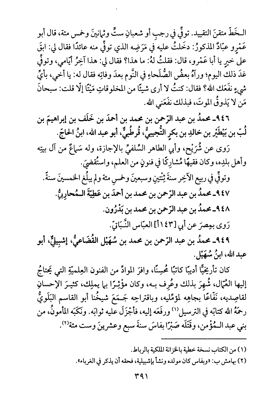 946 - محمدُ بن عبد الرّحمن بن محمد بن أحمدَ بن خَلَف بن إبراهيمَ بن لُبّ بن بَيْطَيْر بن خالدِ بن بكرٍ التُّجيبيُّ، قُرطُبيٌّ، أبو عبد الله، ابنُ الحاجّ.