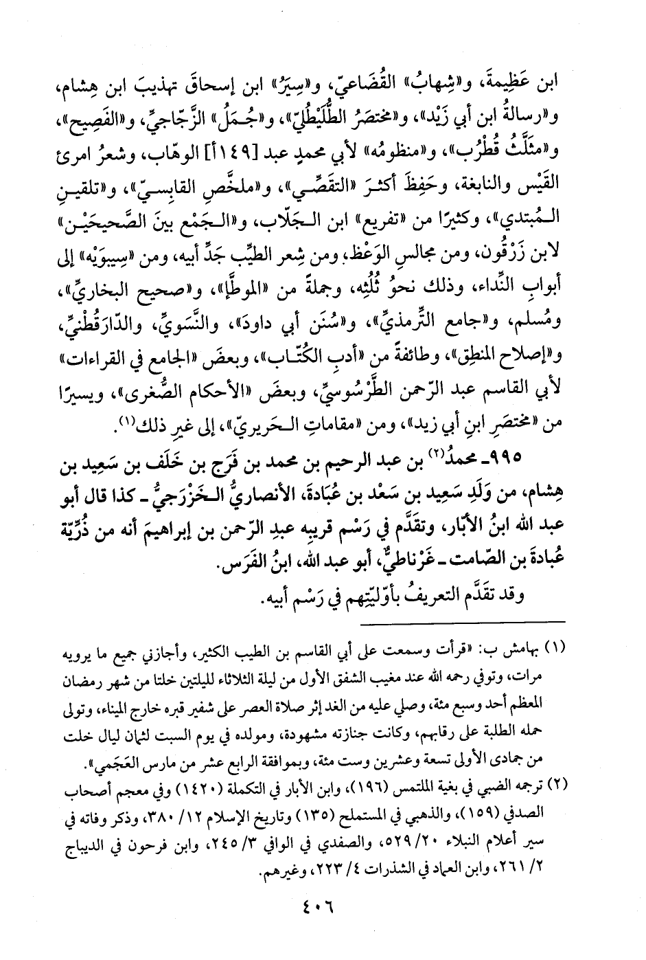 995 - محمدُ (¬2) بن عبد الرحيم بن محمد بن فَرَج بن خَلَف بن سَعِيد بن هِشام، من وَلَدِ سَعِيد بن سَعْد بن عُبَادةَ، الأنصاريُّ الخَزْرَجيُّ -كذا قال أبو عبد الله ابنُ الأبّار، وتقَدَّم في رَسْم قريبِه عبدِ الرّحمن بن إبراهيمَ أنه من ذُرِّيّة عُبادةَ بن الصّامت- غَرْناطيٌّ، أبو عبد الله، ابنُ الفَرَس.