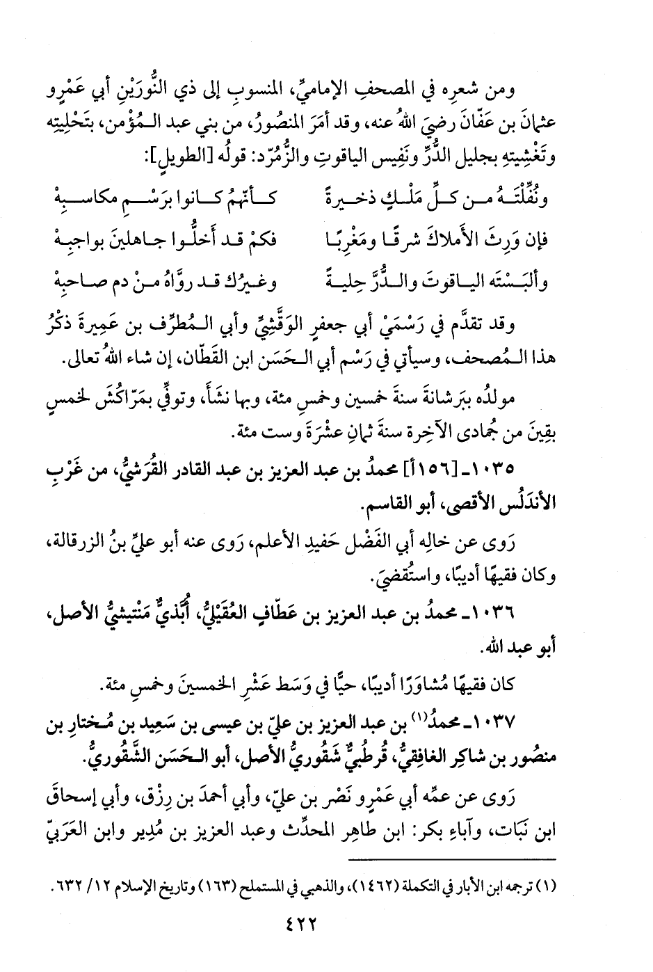 1037 - محمدُ (¬1) بن عبد العزيز بن عليّ بن عيسى بن سَعِيد بن مُختارِ بن منصُور بن شاكِر الغافِقيُّ، قُرطُبيٌّ شَقُوريُّ الأصل، أبو الحَسَن الشَّقُوريُّ.