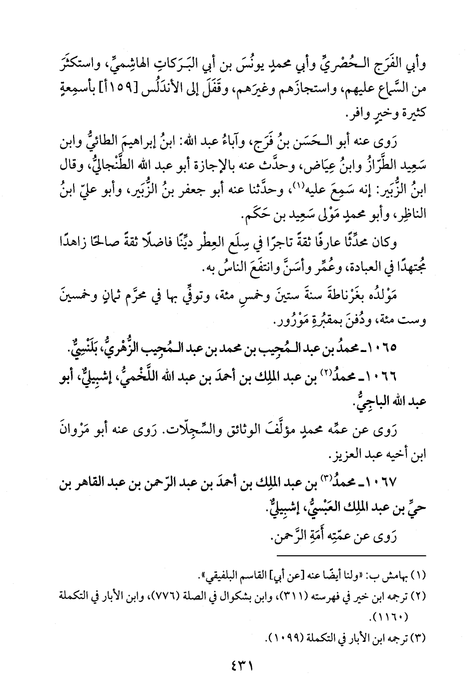 1066 - محمدُ (¬2) بن عبد الملِك بن أحمدَ بن عبد الله اللَّخْميُّ، إشبِيليٌّ, أبو عبد الله الباجِيُّ.