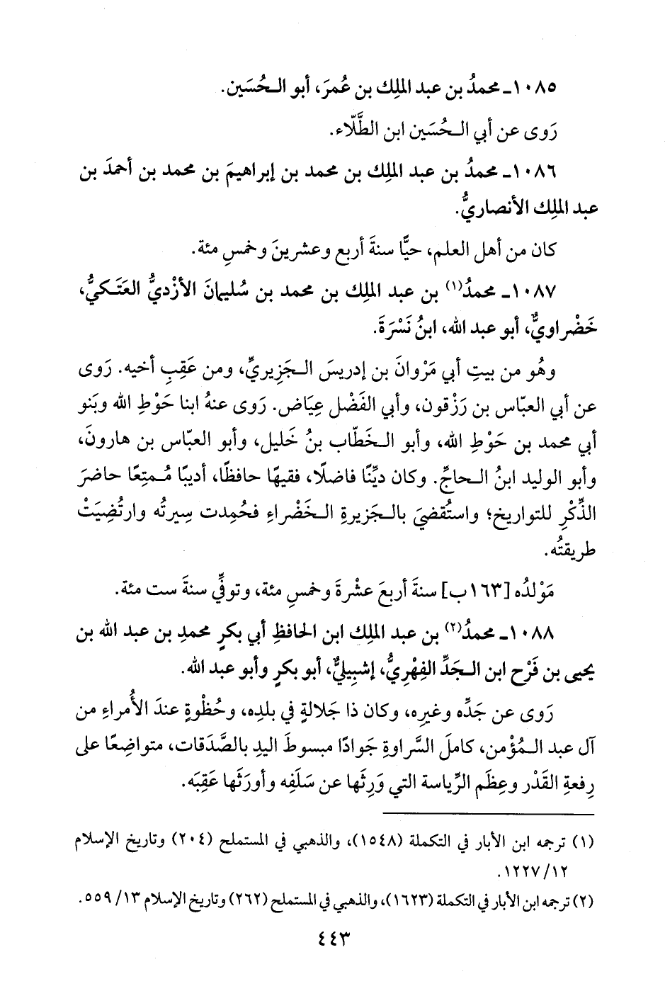 1086 - محمدُ بن عبد الملِك بن محمد بن إبراهيمَ بن محمد بن أحمدَ بن عبد الملِك الأنصاريُّ.