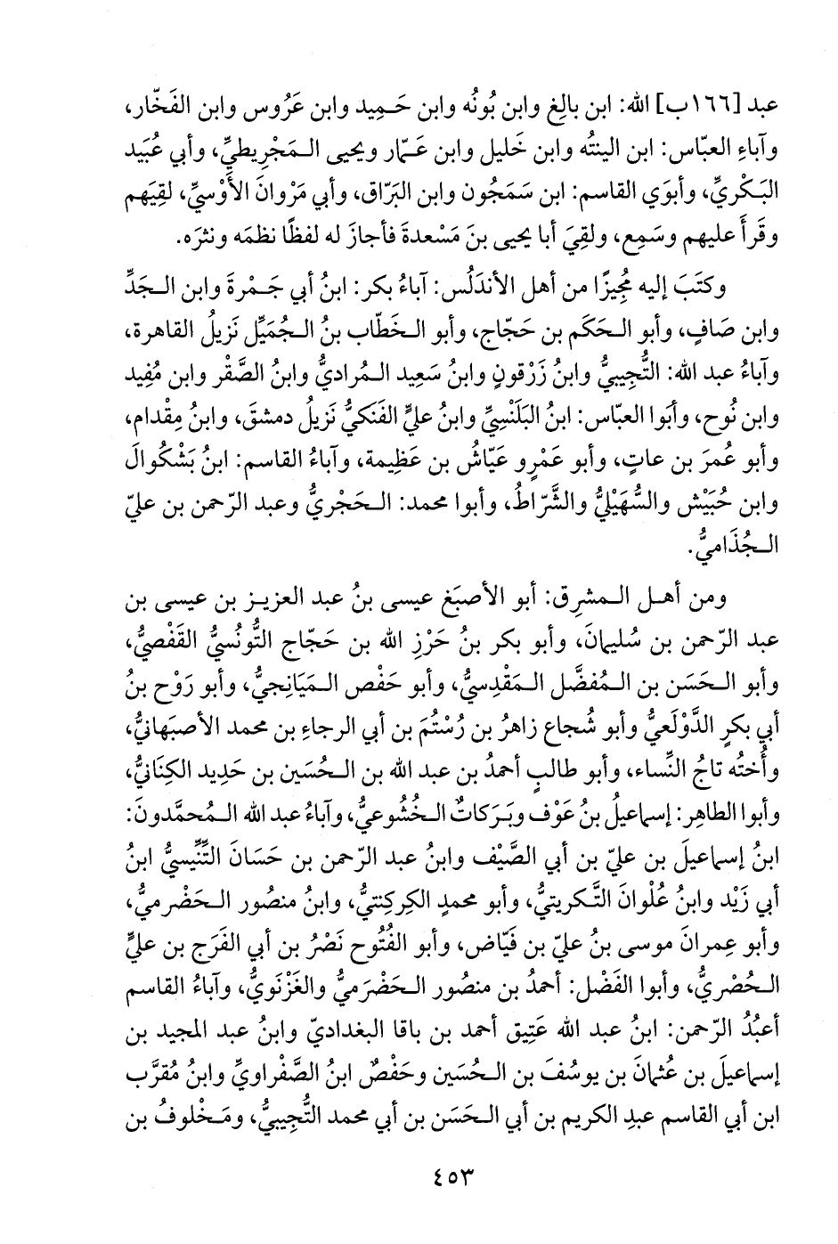 عبد [166 ب] الله: ابن بالِغ وابن بُونُه وابن حَمِيد وابن عَرُوس وابن الفَخّار، وآباءِ العبّاس: ابن الينتُه وابن خَليل وابن عَمَّار ويحيى المَجْرِيطيِّ، وأبي عُبَيد البَكْريِّ، وأبوَي القاسم: ابن سَمَجُون وابن البَرّاق، وأبي مَرْوانَ الأَوْسيِّ، لقِيَهم وقَرأَ عليهم وسَمِع، ولقِيَ أَبا يحيى بنَ مَسْعدةَ فأجازَ له لفظًا نظمَه ونثرَه.