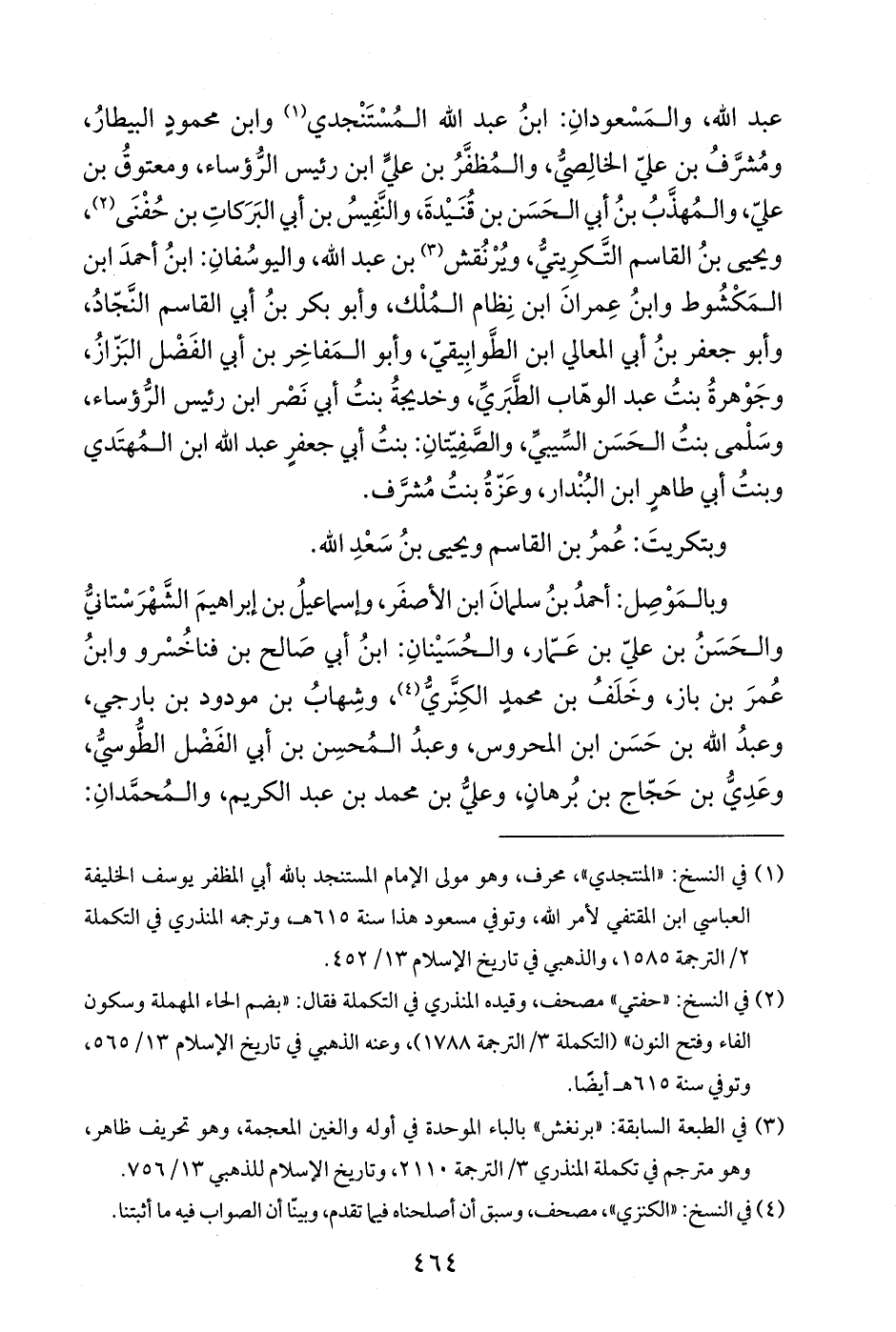 عبد الله، والمَسْعودانِ: ابنُ عبد الله المُسْتَنْجدي (¬1) وابن محمودٍ البيطارُ، ومُشرَّفُ بن علي الخالِصيُّ، والمُظفَّرُ بن عليٍّ ابن رئيس الرُّؤساء، ومعتوقُ بن عليّ، والمُهذَّبُ بنُ أبي الحَسَن بن قُنَيْدةَ، والنَّفِيسُ بن أبي البَرَكاتِ بن حُفْنَى (¬2)، ويحيى بنُ القاسم التَّكرِيتيُّ، ويُرْنُقش (¬3) بن عبد الله، واليوسُفانِ: ابنُ أحمدَ ابن المَكْشُوط وابنُ عِمرانَ ابن نِظام المُلْك، وأبو بكر بنُ أبي القاسم النَّجّادُ، وأبو جعفر بنُ أبي المعالي ابن الطَّوابِيقيّ، وأبو المَفاخِر بن أبي الفَضْل البَزّازُ، وجَوْهرةُ بنتُ عبد الوهّاب الطَّبَريِّ، وخديجةُ بنتُ أبي نَصْر ابن رئيس الرُّؤساء، وسَلْمى بنتُ الحَسَن السِّيبيِّ، والصَّفِيّتانِ: بنتُ أبي جعفرٍ عبد الله ابن المُهتَدي وبنتُ أبي طاهرٍ ابن البُنْدار، وعَزّةُ بنتُ مُشرَّف.