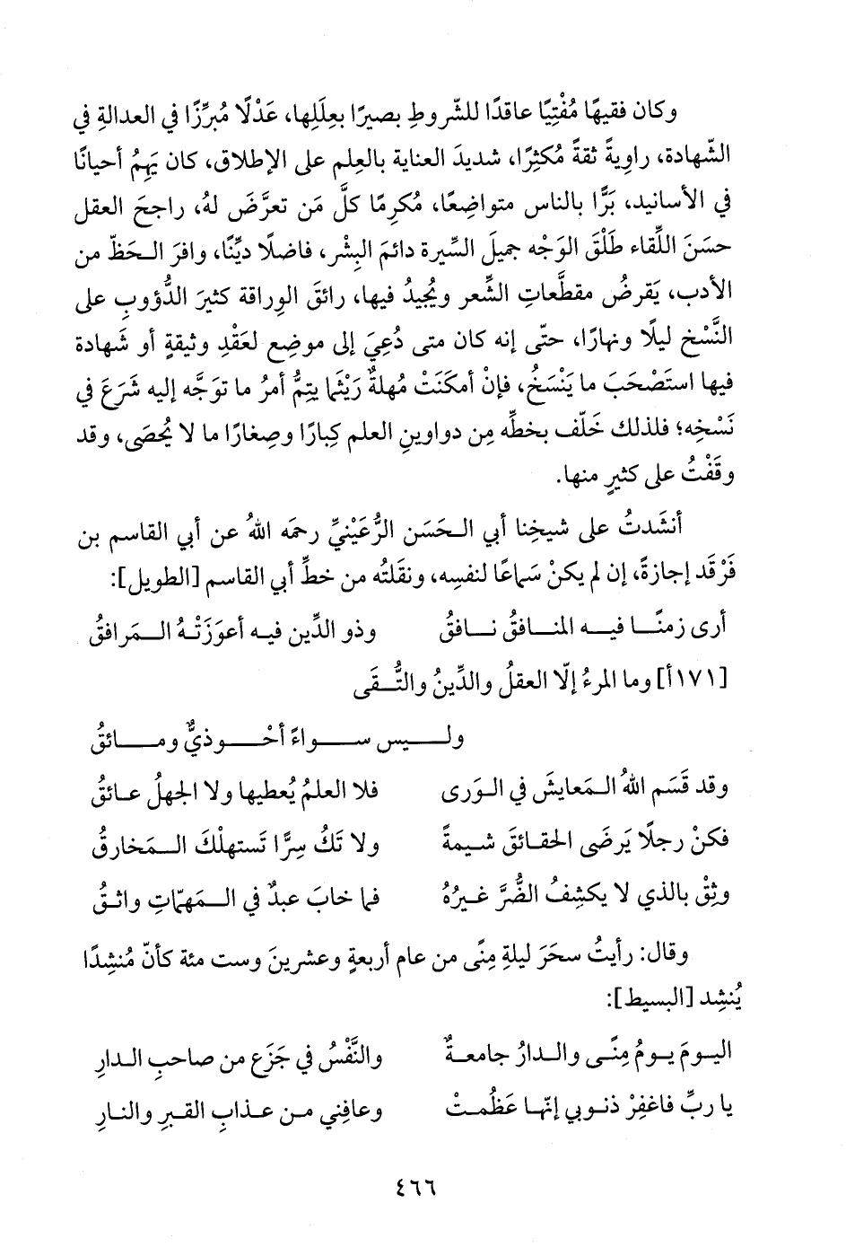 أنشَدتُ على شيخِنا أبي الحَسَن الرُّعَيْنيِّ رحمَه اللهُ عن أبي القاسم بن فَرْقَد إجازةً، إن لم يكنْ سَماعًا لنفسِه، ونقَلتُه من خطِّ أبي القاسم [الطويل]: