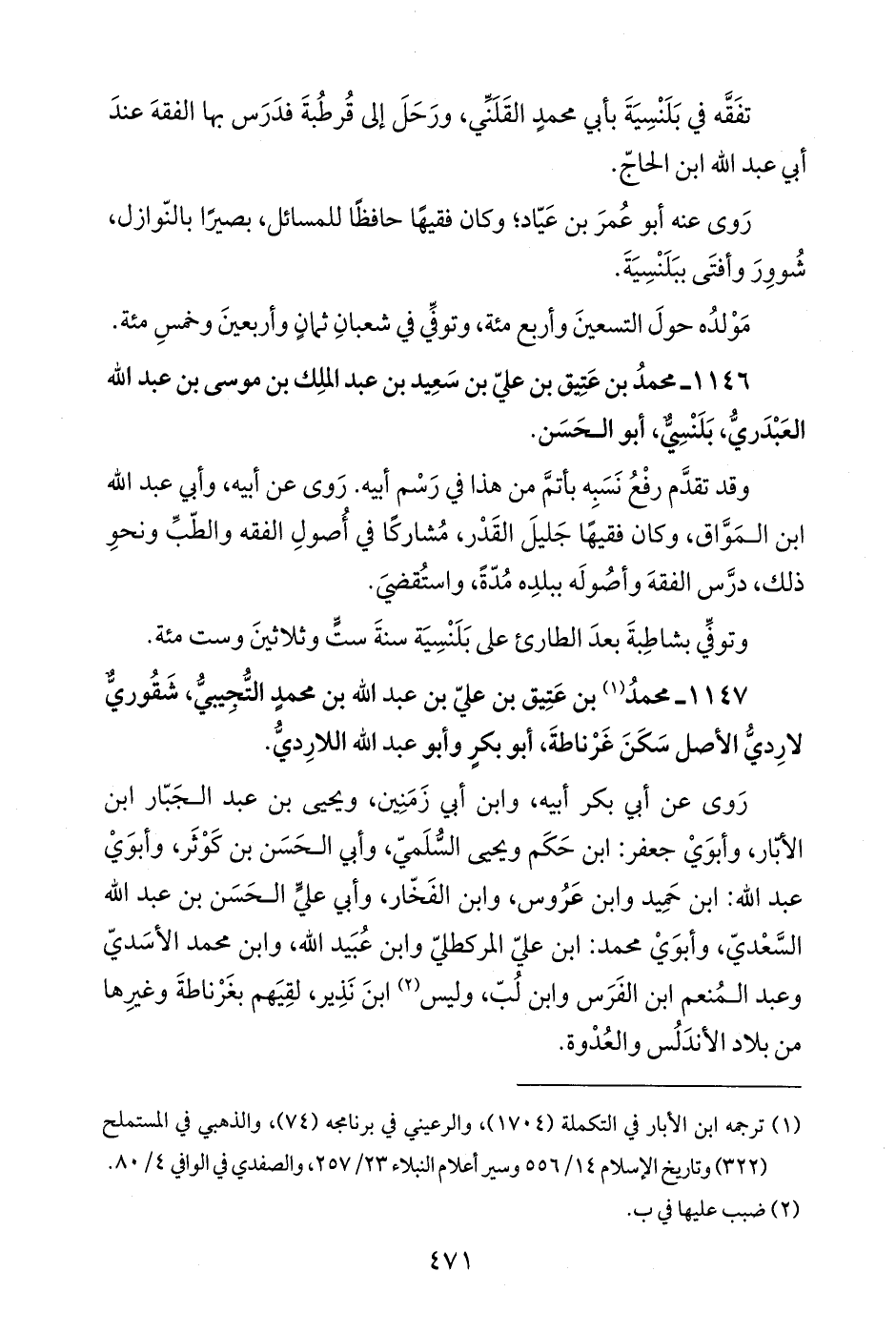1146 - محمدُ بن عَتِيق بن علىّ بن سَعِيد بن عبد الملِك بن موسى بن عبد الله العَبْدَريُّ، بَلَنْسِيٌّ، أبو الحَسَن.