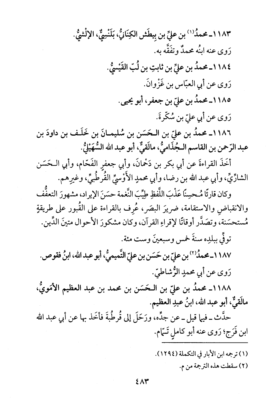 1186 - محمدُ بن عليّ بن الحَسَن بن سُليمانَ بن خَلَف بن داودَ بن عبد الرّحمن بن القاسم الجُذَاميُّ، مالَقيٌّ، أبو عبد الله السُّهَيْليُّ.