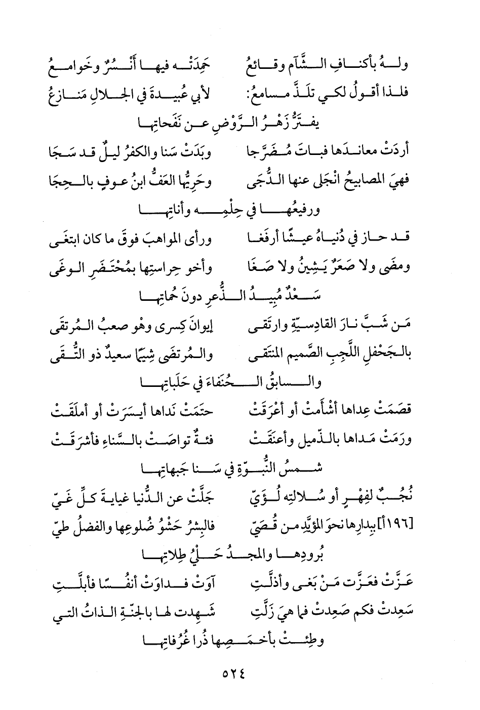 فلذا أقولُ لكي تلَذَّ مسامعُ: ... لأبي عُبيدةَ في الجلالِ مَنازعُ