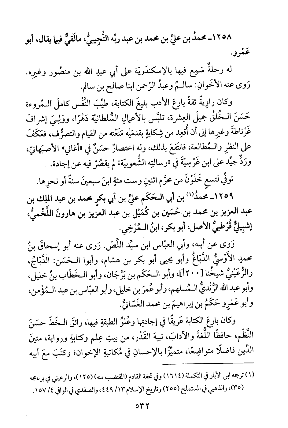 1259 - محمدُ (¬1) بن أبي الحَكَم عليِّ بن أبي بكرٍ محمد بن عبد الملِك بن عبد العزيز بن محمد بن حُسَين بن كُمَيْل بن عبد العزيز بن هارونَ اللَّخْميُّ، إشبِيليٌّ قُرْطبيُّ الأصل، أبو بكر، ابنُ المُرْخِي.