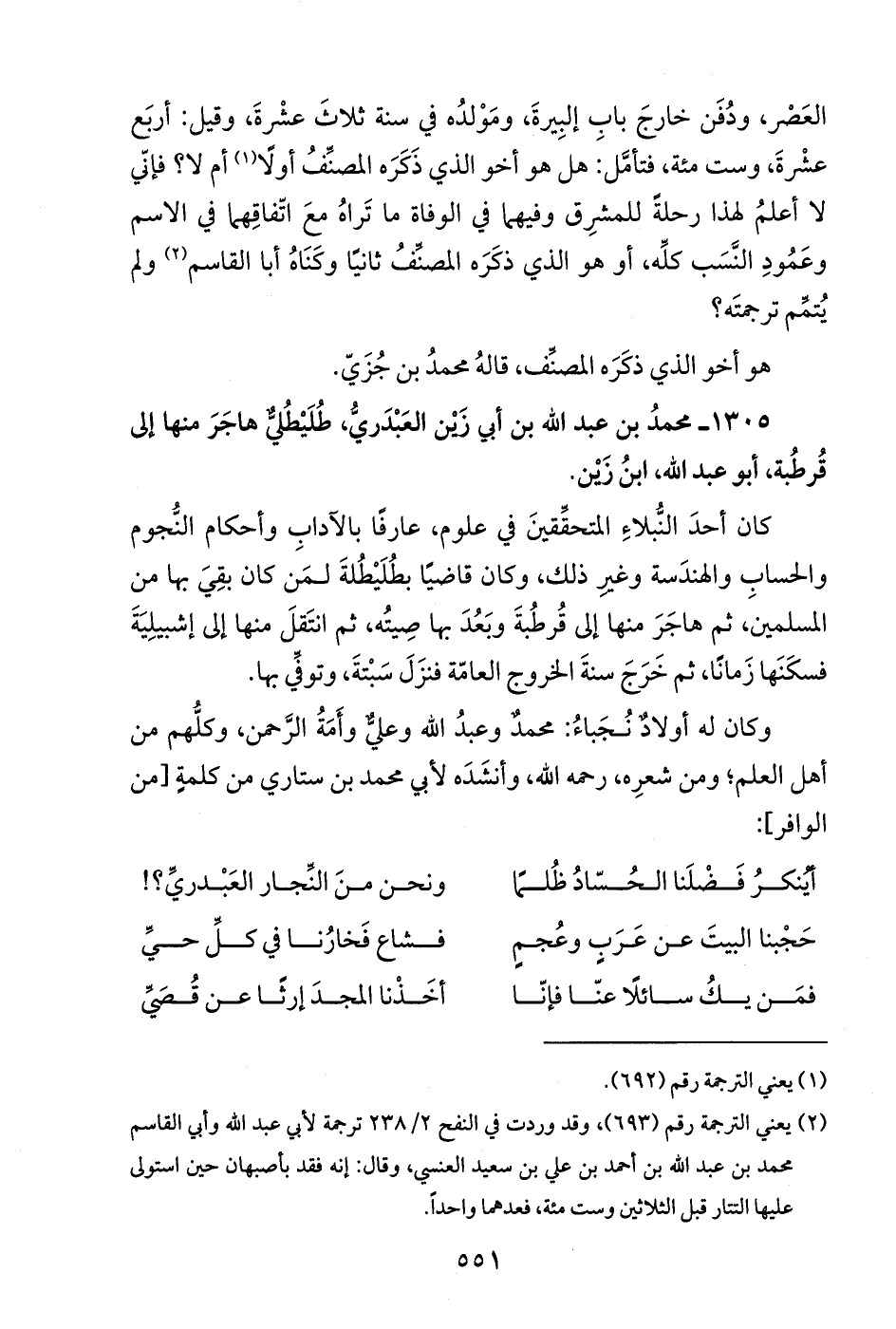 1305 - محمدُ بن عبد الله بن أبي زَيْن العَبْدَريُّ، طُلَيْطُليٌّ هاجَرَ منها إلى قُرطُبة، أبو عبد الله، ابنُ زَيْن.