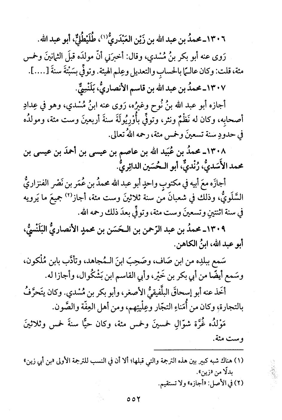 1306 - محمدُ بن عبد الله بن زَيْن العَبْدَريُّ (¬1)، طُلَيْطُليٌّ، أبو عبد الله.