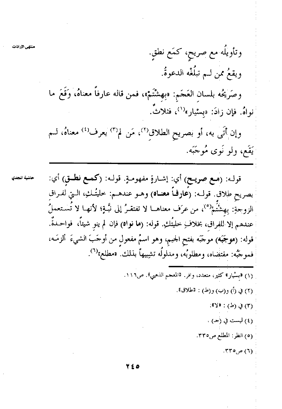 وَتَأْوِيلُهُ مَعَ صَرِيحٍ كَمَعَ نُطْقٍ وَيَقَعُ مِمَّنْ لَمْ تَبْلُغْهُ الدَّعْوَةُ لِعَدَمِ الْمَانِعِ، وَصَرِيحِهِ بِلِسَانِ الْعَجَمِ بهشتم فَمَنْ قَالَهُ عَارِفًا مَعْنَاهُ وَقَعَ مَا نَوَاهُ فَإِنْ زَادَ بِسَيَّارٍ فَثَلَاثٌ وَإِنْ أَتَى بِهِ أَوْ بِصَرِيحِ الطَّلَاقِ مَنْ لَا يَعْرِفُ مَعْنَاهُ لَمْ يَقَعْ وَلَوْ نَوَى مُوجِبَهُ