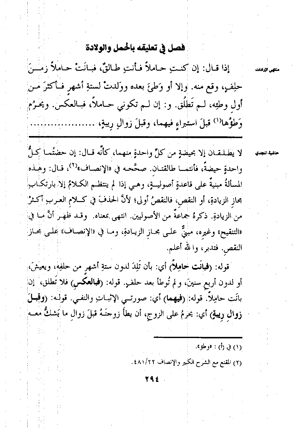 إذا قال إنْ كُنْت حَامِلًا فَأَنْتِ طَالِقٌ فَبَانَتْ حَامِلًا زَمَنَ حَلِفِهِ. وَقَعَ مِنْهُ أَوْ وَطِئَ بَعْدَهُ وَوَلَدَتْ لِسِتَّةِ أَشْهُرٍ فَأَكْثَرَ مِنْ أَوَّلِ وَطْئِهِ لَمْ تَطْلُقْ وإنْ لَمْ تَكُونِي حَامِلًا فَبِالْعَكْسِ وَيَحْرُمُ وَطْؤُهَا قَبْلَ اسْتِبْرَاءٍ فِيهِمَا وقَبْلَ زَوَالِ رِيبَةٍ