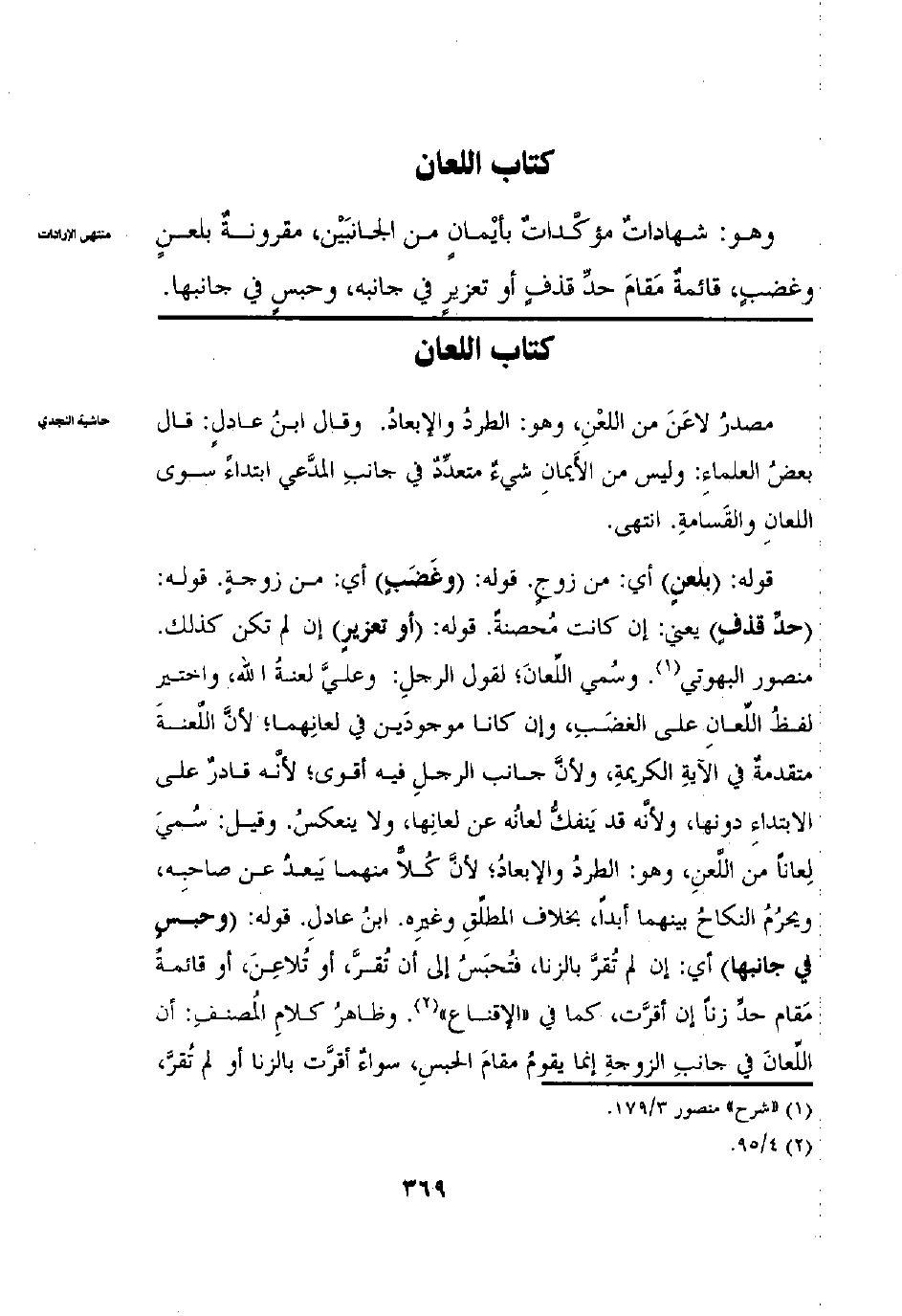وَهُوَ شَهَادَاتٌ مُؤَكَّدَاتٌ بِأَيْمَانٍ مِنْ الْجَانِبَيْنِ مَقْرُونَةٌ بِلَعْنٍ وَغَضَبٍ قَائِمَةٌ مَقَامَ حَدِّ قَذْفٍ أَوْ تَعْزِيرٍ فِي جَانِبِهِ وحَبْسٍ مِنْ جَانِبِهَا