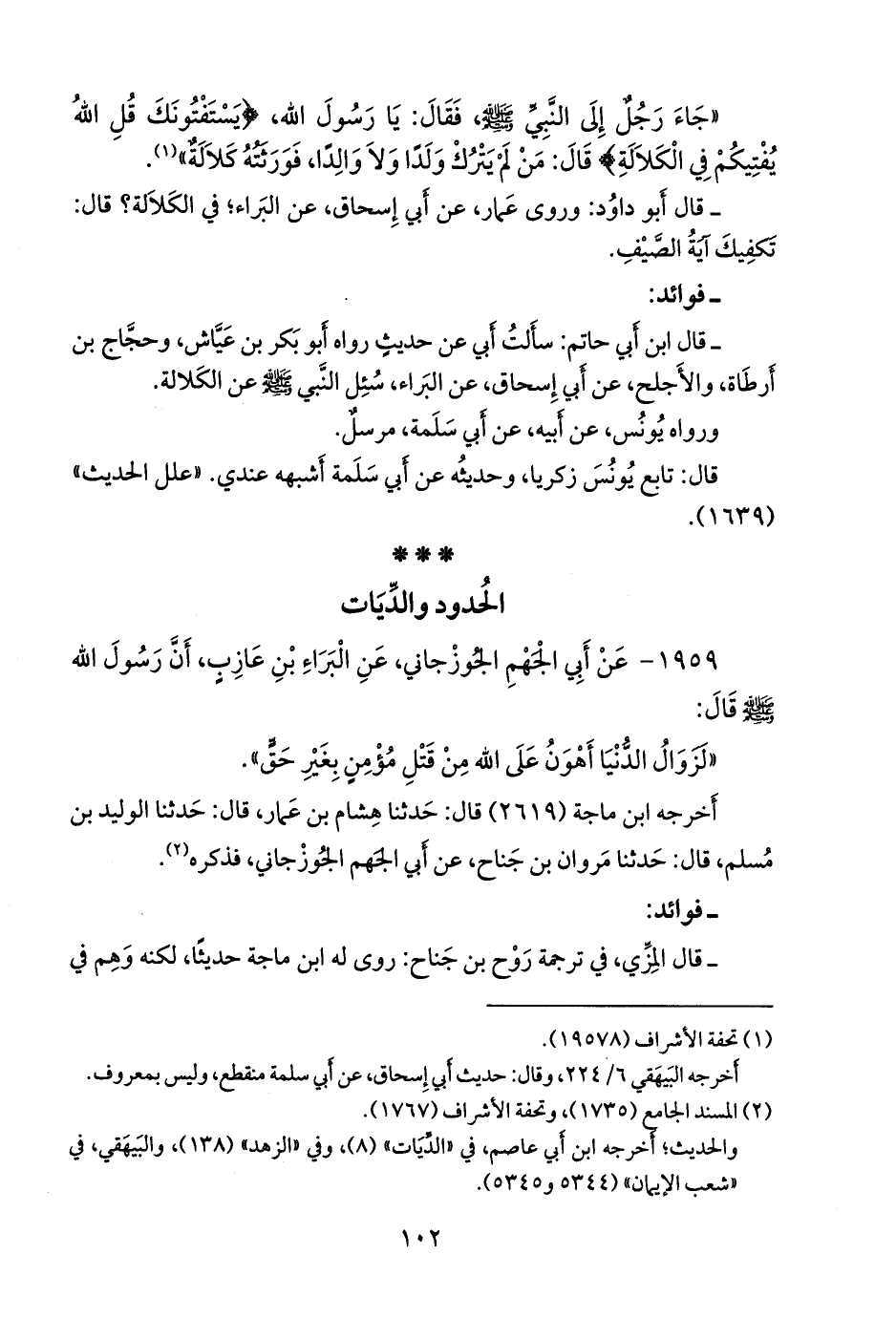 - وقال ابن أَبي حاتم: سأَلتُ أَبي عن حديث رواه أَبو بكر بن عياش، وحجاج بن أَرطَاة، والأَجلح، عن أَبي إِسحاق، عن البراء، سُئل النبي صَلى الله عَليه وسَلم عن الكلالة.