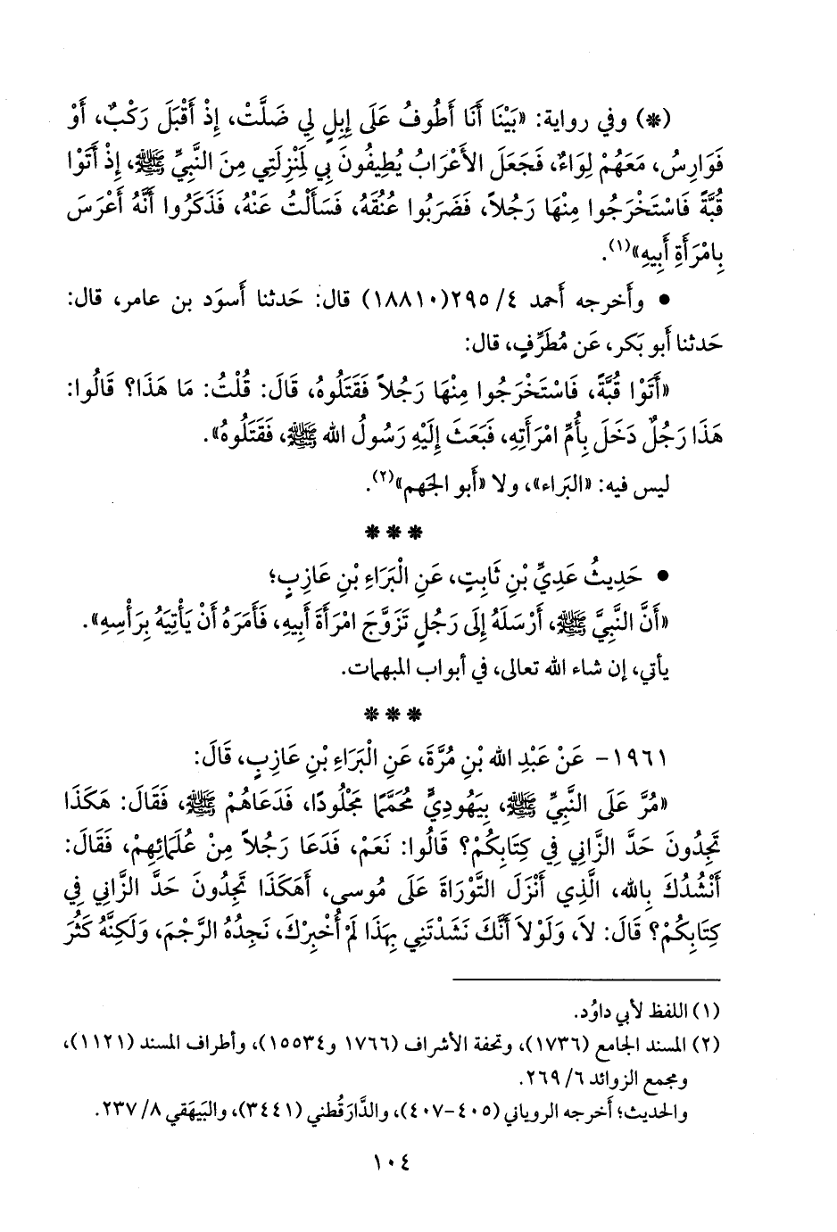 «مر على النبي صَلى الله عَليه وسَلم بيهودي محمما مجلودا، فدعاهم صَلى الله عَليه وسَلم فقال: هكذا تجدون حد الزاني في كتابكم؟ قالوا: نعم، فدعا رجلا من علمائهم، فقال: أنشدك بالله، الذي أنزل التوراة على موسى، أهكذا تجدون حد الزاني في كتابكم؟ قال: لا، ولولا أنك نشدتني بهذا لم أخبرك، نجده الرجم، ولكنه كثر