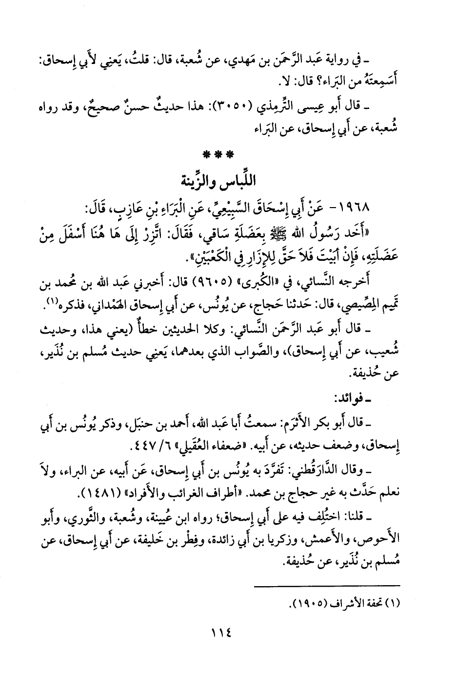 - قال أَبو عبد الرَّحمَن النَّسَائي: وكلا الحديثين خطأ (يعني هذا، وحديث شعيب، عن أبي إسحاق)، والصواب الذي بعدهما، يعني حديث مسلم بن نُذَير، عن حذيفة.