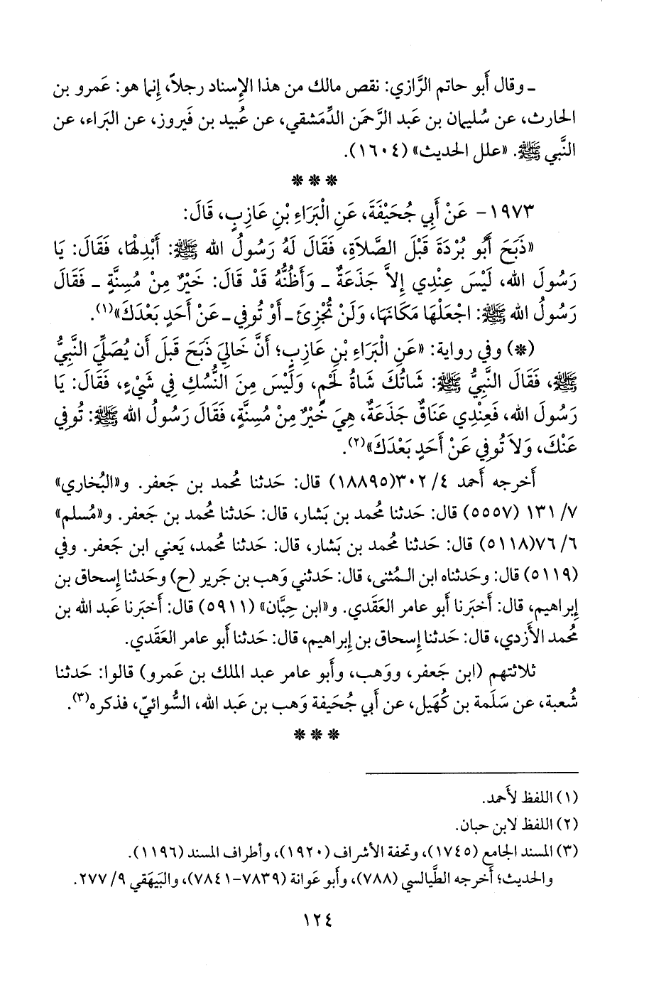 ١٩٧٣ - عن أبي جُحيفة، عن البراء بن عازب، قال:
