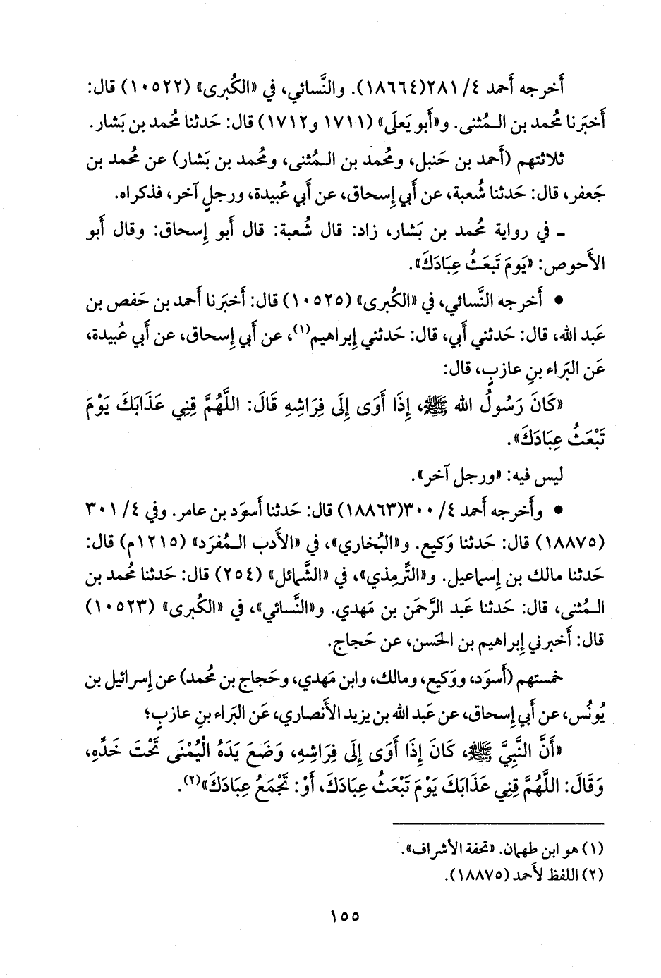 خمستهم (أسود، ووكيع، ومالك، وابن مهدي، وحجاج بن محمد) عن إسرائيل بن يونس، عن أبي إسحاق، عن عبد الله بن يزيد الأَنصاري، عن البراء بن عازب؛