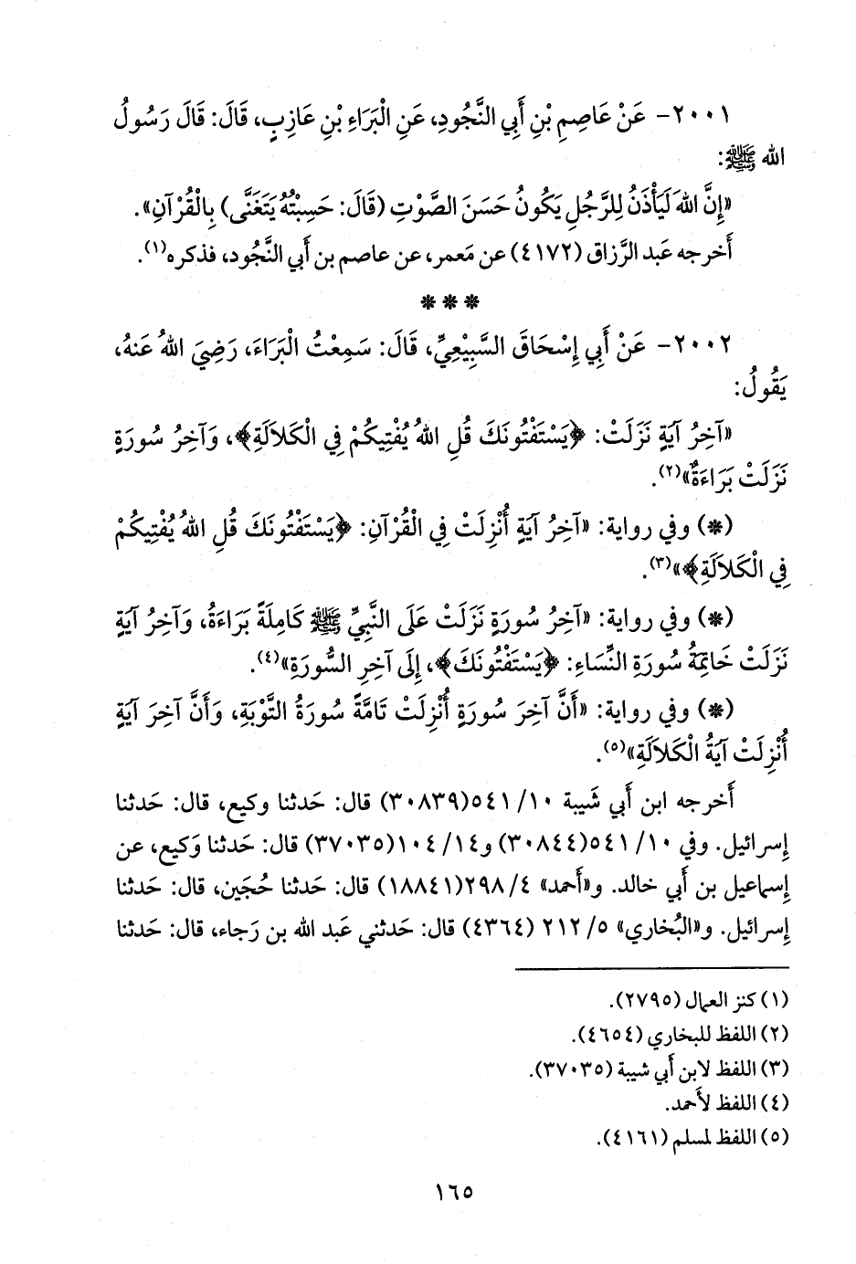 ٢٠٠١ - عن عاصم بن أبي النجود، عن البراء بن عازب، قال: قال رسول الله صَلى الله عَليه وسَلم: