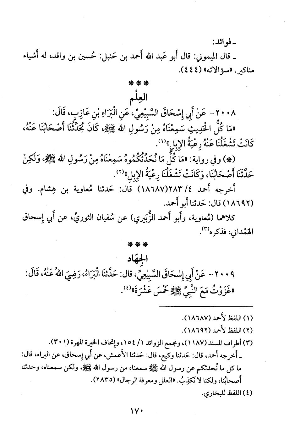 ٢٠٠٩ - عن أبي إسحاق السبيعي، قال: حدثنا البراء، رضي الله عنه، قال: