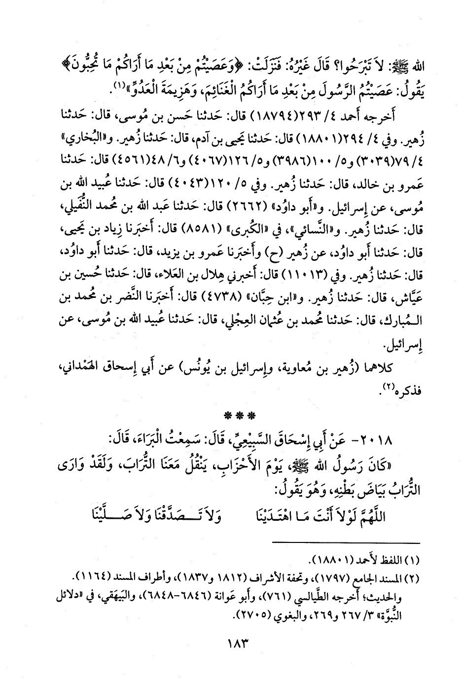 ٢٠١٨ - عن أبي إسحاق السبيعي، قال: سمعت البراء، قال: