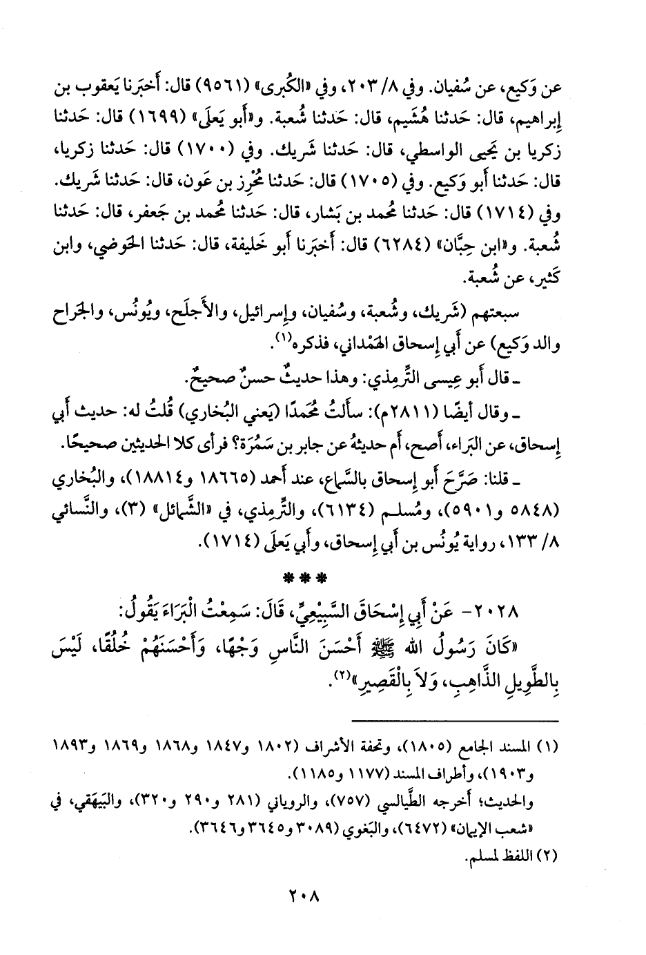 ٢٠٢٨ - عن أبي إسحاق السبيعي، قال: سمعت البراء يقول: