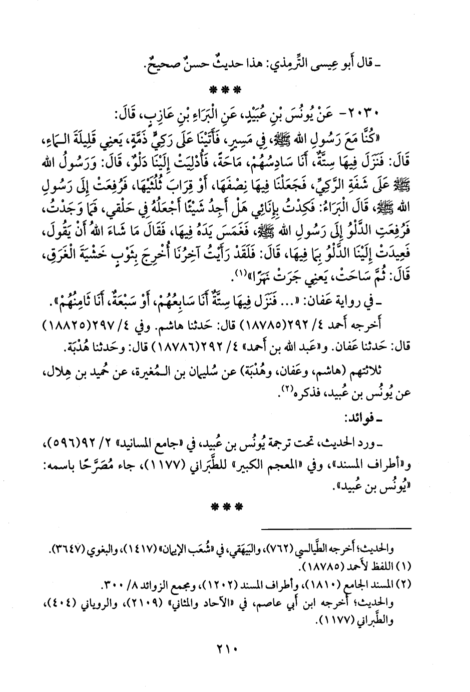 ٢٠٣٠ - عن يونس بن عبيد، عن البراء بن عازب، قال: