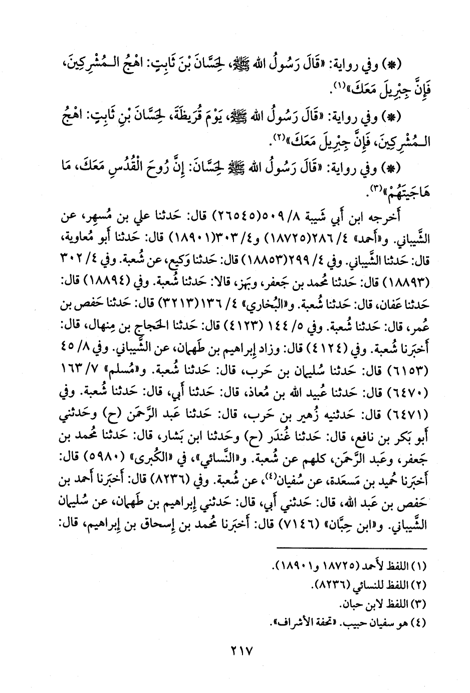 «قال لي رسول الله صَلى الله عَليه وسَلم: اهجهم، أو هاجهم، يعني المشركين، وجبريل معك» (¬٢).