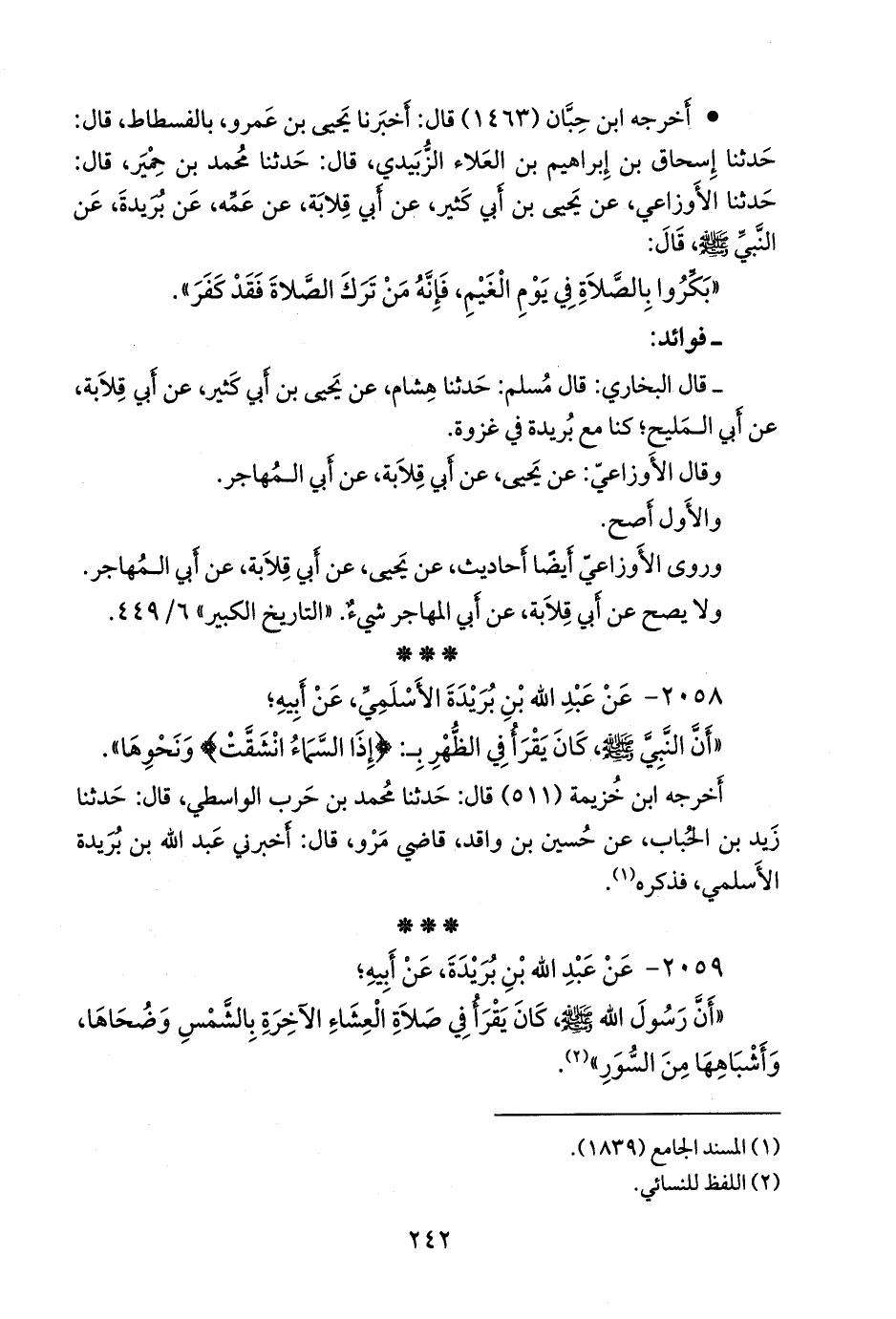 كلاهما (زيد بن الحُبَاب، وعلي بن الحسن) عن الحسين بن واقد، قال: حدثني عبد الله بن بُريدة، فذكره (¬٢).