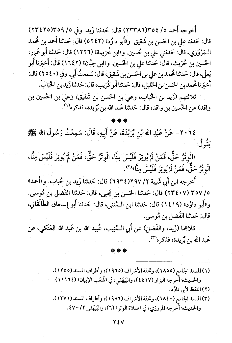 «الوتر حق، فمن لم يوتر فليس منا، الوتر حق، فمن لم يوتر فليس منا، الوتر حق، فمن لم يوتر فليس منا» (¬١).