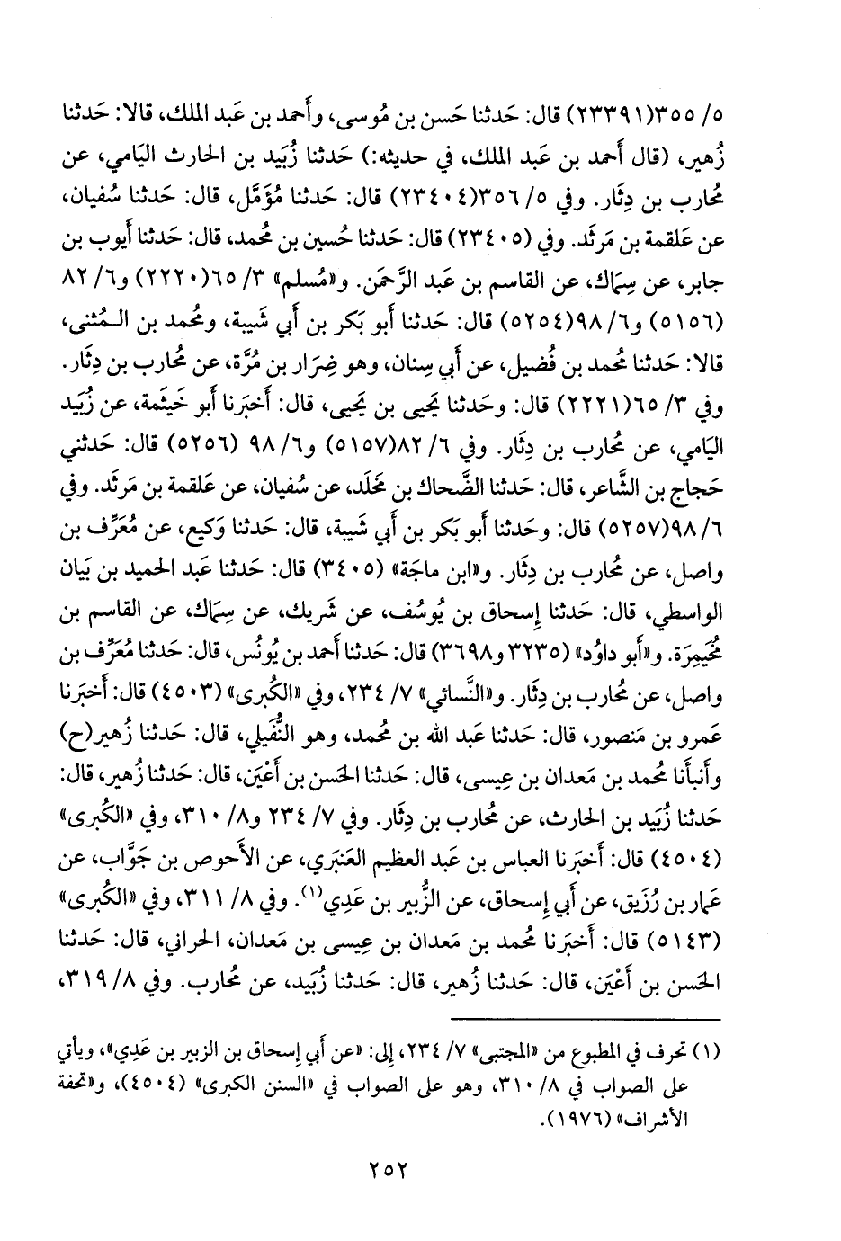 وفي (٢٣٤٠٥) قال: حدثنا حسين بن محمد، قال: حدثنا أيوب بن جابر، عن سِمَاك، عن القاسم بن عبد الرَّحمَن. و «مسلم» ٣/ ٦٥ (٢٢٢٠) و ٦/ ٨٢ (٥١٥٦) و ٦/ ٩٨ (٥٢٥٤) قال: حدثنا أَبو بكر بن أبي شيبة، ومحمد بن المثنى، قالا: حدثنا محمد بن فضيل، عن أبي سنان، وهو ضرار بن مُرَّة، عن محارب بن دثار. وفي ٣/ ٦٥ (٢٢٢١) قال: وحدثنا يحيى بن يحيى، قال: أخبرنا أَبو خيثمة، عن زبيد اليامي، عن محارب بن دثار. وفي ٦/ ٨٢ (٥١٥٧) و ٦/ ٩٨ (٥٢٥٦) قال: حدثني حجاج بن الشاعر، قال: حدثنا الضحاك بن مخلد، عن سفيان، عن علقمة بن مَرثد. وفي ٦/ ٩٨ (٥٢٥٧) قال: وحدثنا أَبو بكر بن أبي شيبة، قال: حدثنا وكيع، عن معرف بن واصل، عن محارب بن دثار. و «ابن ماجة» (٣٤٠٥) قال: حدثنا عبد الحميد بن بيان الواسطي، قال: حدثنا إسحاق بن يوسف، عن شريك، عن سِمَاك، عن القاسم بن مُخَيمِرة. و «أَبو داود» (٣٢٣٥ و ٣٦٩٨) قال: حدثنا أحمد بن يونس، قال: حدثنا معرف بن واصل، عن محارب بن دثار. و «النَّسَائي» ٧/ ٢٣٤، وفي «الكبرى» (٤٥٠٣) قال: أخبرنا عَمرو بن منصور، قال: حدثنا عبد الله بن محمد، وهو النفيلي، قال: حدثنا زهير (ح) وأنبأنا محمد بن معدان بن عيسى، قال: حدثنا الحسن بن أَعْيَن، قال: حدثنا زهير، قال: حدثنا زبيد بن الحارث، عن محارب بن دثار. وفي ٧/ ٢٣٤ و ٨/ ٣١٠، وفي «الكبرى» (٤٥٠٤) قال: أخبرنا العباس بن عبد العظيم العنبري، عن الأَحوص بن جَوَّاب، عن عمار بن رُزيق، عن أبي إسحاق، عن الزبير بن عَدي (¬١). وفي ٨/ ٣١١، وفي «الكبرى» (٥١٤٣) قال: أخبرنا محمد بن معدان بن عيسى بن معدان، الحراني، قال: حدثنا الحسن بن أَعْيَن، قال: حدثنا زهير، قال: حدثنا زبيد، عن محارب. وفي ٨/ ٣١٩،