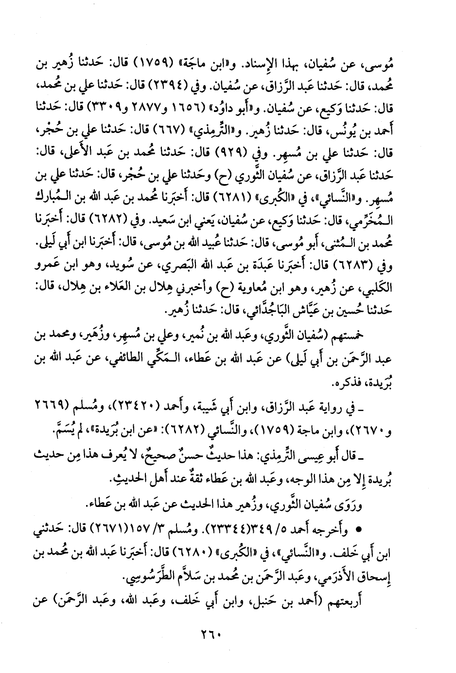 خمستهم (سفيان الثوري، وعبد الله بن نُمير، وعلي بن مُسهِر، وزهير، ومحمد بن عبد الرَّحمَن بن أبي ليلى) عن عبد الله بن عطاء، المكي الطائفي، عن عبد الله بن بُريدة، فذكره.