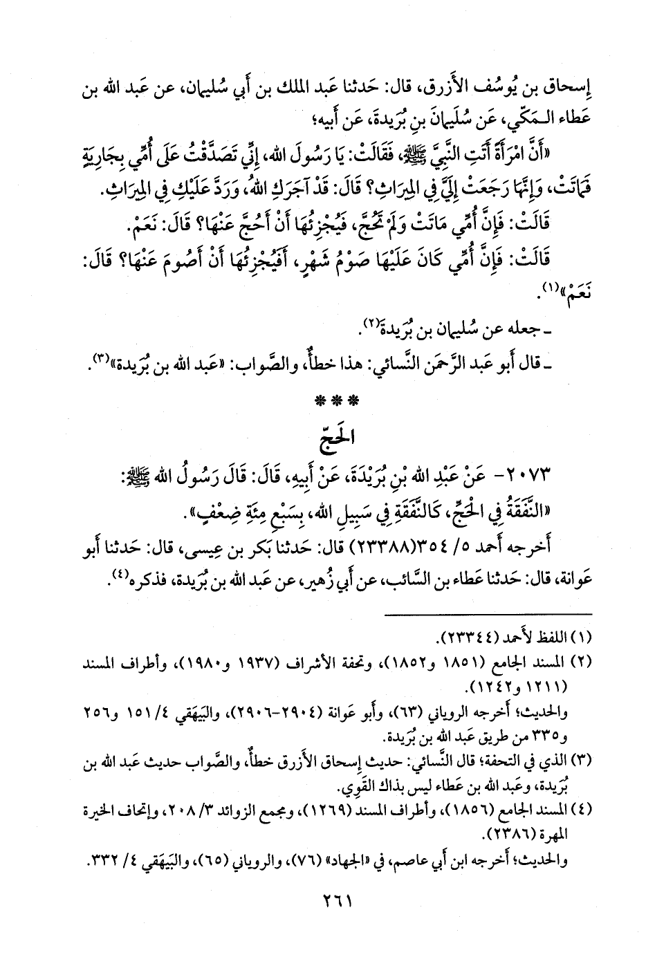 - قال الدارقُطني: أخرج مسلم عن إسحاق الأزرق، عن عبد الملك، عن عبد الله بن عطاء، عن سليمان بن بُريدة؛ إني تصدقت على أمي بجارية.