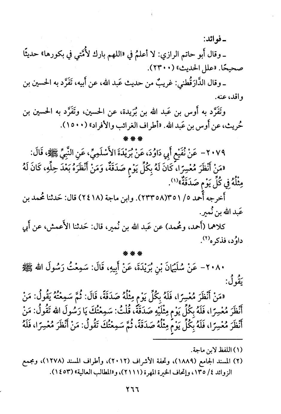 ٢٠٧٩ - عن نفيع أبي داود، عن بُريدة الأسلمي، عن النبي صَلى الله عَليه وسَلم قال: