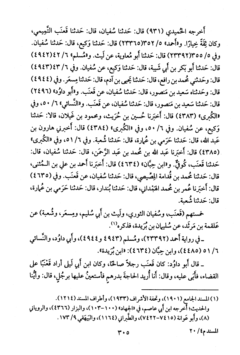 وفي (٤٩٤٤) قال: وحدثناه سعيد بن منصور، قال: حدثنا سفيان، عن قعنب. و «أَبو داود» (٢٤٩٦) قال: حدثنا سعيد بن منصور، قال: حدثنا سفيان، عن قعنب. و «النَّسَائي» ٦/ ٥٠، وفي «الكبرى» (٤٣٨٣) قال: أخبرنا حسين بن حريث، ومحمود بن غَيلان، قالا: حدثنا وكيع، عن سفيان. وفي ٦/ ٥٠، وفي «الكبرى» (٤٣٨٤) قال: أخبرني هارون بن عبد الله، قال: حدثنا حرمي بن عمارة، قال: حدثنا شعبة. وفي ٦/ ٥١، وفي «الكبرى» (٤٣٨٥) قال: أخبرنا عبد الله بن محمد بن عبد الرَّحمَن، قال: حدثنا سفيان، قال: حدثنا قعنب، كوفي. و «ابن حِبَّان» (٤٦٣٤) قال: أخبرنا أحمد بن علي بن المثنى، قال: حدثنا محمد بن قُدَامة المصيصي، قال: حدثنا سفيان، عن قعنب. وفي (٤٦٣٥) قال: أخبرنا عمر بن محمد الهمداني، قال: حدثنا بُندَار، قال: حدثنا حرمي بن عمارة، قال: حدثنا شعبة.