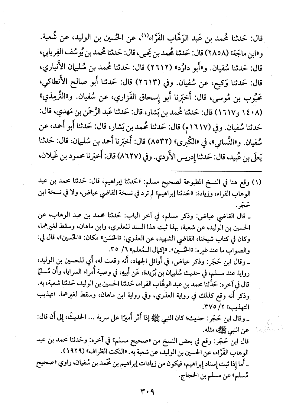 قال: حدثنا عبد الصمد، قال: حدثنا شعبة. وفي (٨٧١٢) قال: أخبرنا عبد الرَّحمَن بن محمد بن سَلَّام، قال: حدثنا إسحاق الأزرق، عن سفيان. وفي (٨٧٣١) قال: أخبرني أحمد بن حفص بن عبد الله، قال: حدثني أبي، قال: حدثني إبراهيم بن طهمان، عن شعبة بن الحجاج. و «أَبو يَعلى» (١٤١٣) قال: قرئ على بشر بن الوليد، عن أبي يوسف، عن أبي حنيفة. و «ابن حِبَّان» (٤٧٣٩) قال: أخبرنا عبد الله بن محمد الأزدي، قال: حدثنا إسحاق بن إبراهيم الحنظلي، قال: أخبرنا يحيى ابن آدم، قال: حدثنا سفيان، وأملاه علينا إملاء.