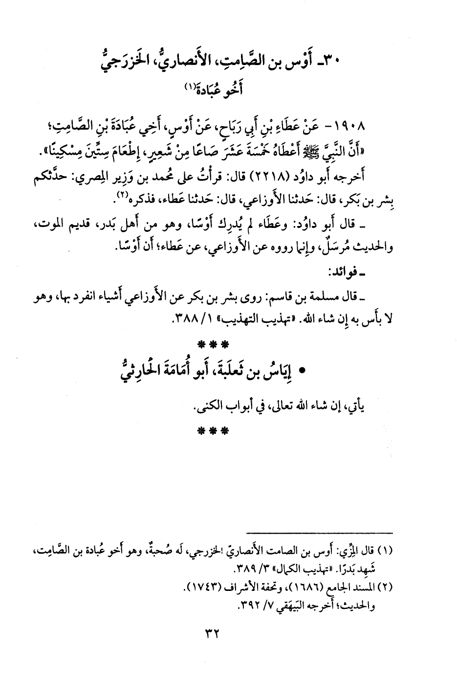 ٣٠ - أوس بن الصامت، الأَنصاري، الخزرجي