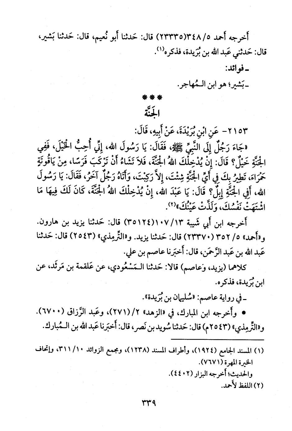 (¬٢) المسند الجامع (١٩٢٦)، وتحفة الأشراف (١٩٣٩)، وأطراف المسند (١٢١٣).