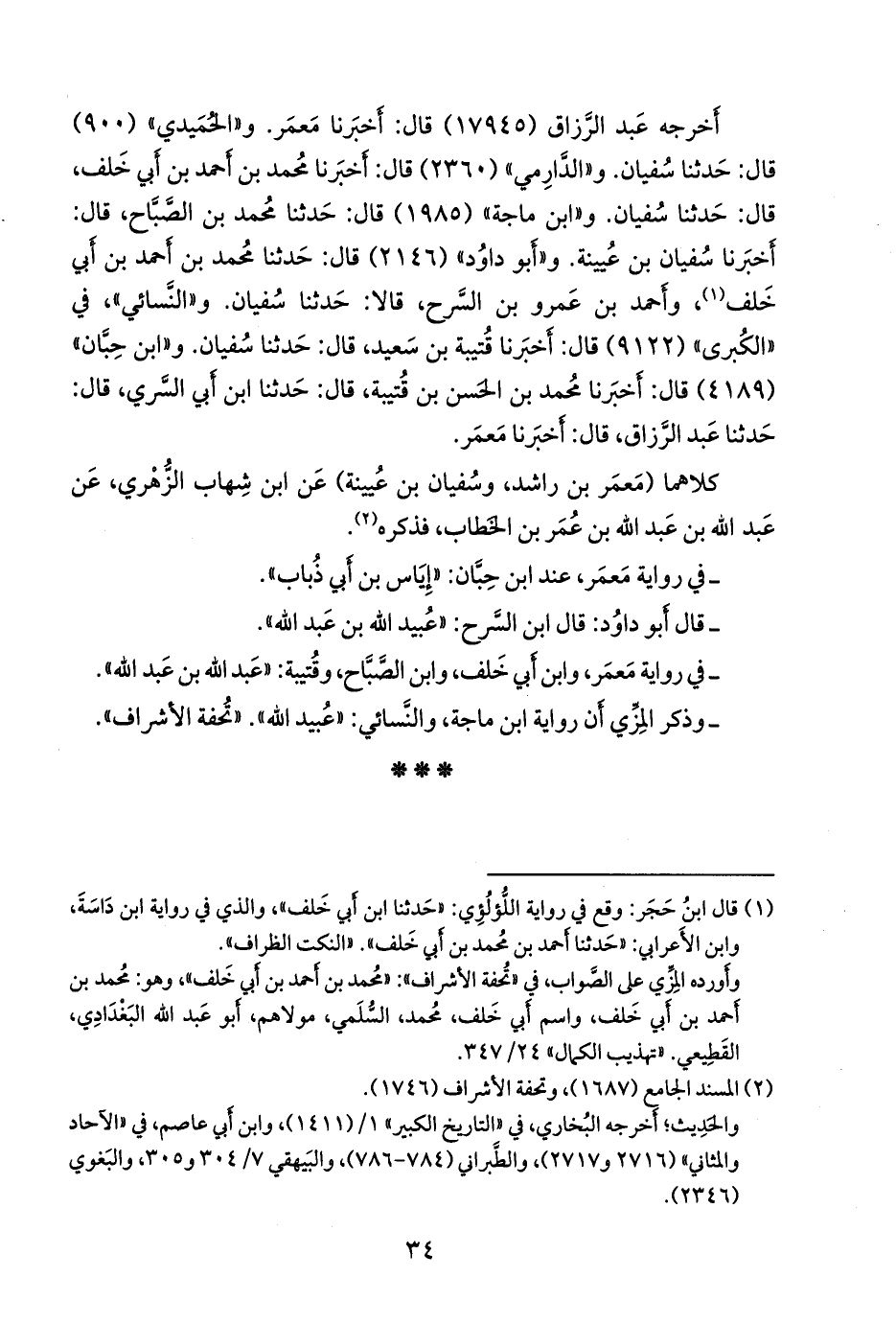 (¬١) قال ابن حجر: وقع في رواية اللؤلؤي: «حدثنا ابن أبي خلف»، والذي في رواية ابن داسة، وابن الأعرابي: «حدثنا أحمد بن محمد بن أبي خلف». «النكت الظراف».