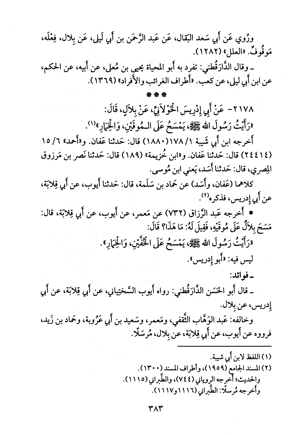 - قال أَبو الحسن الدارقُطني: رواه أيوب السَّخْتِياني، عن أبي قلابة، عن أبي إدريس، عن بلال.