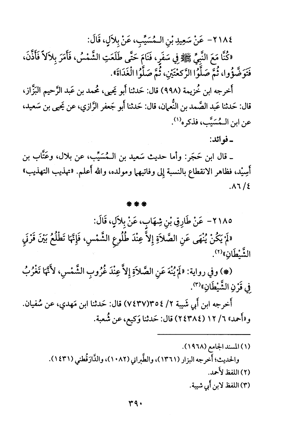 ٢١٨٤ - عن سعيد بن المُسَيب، عن بلال، قال: