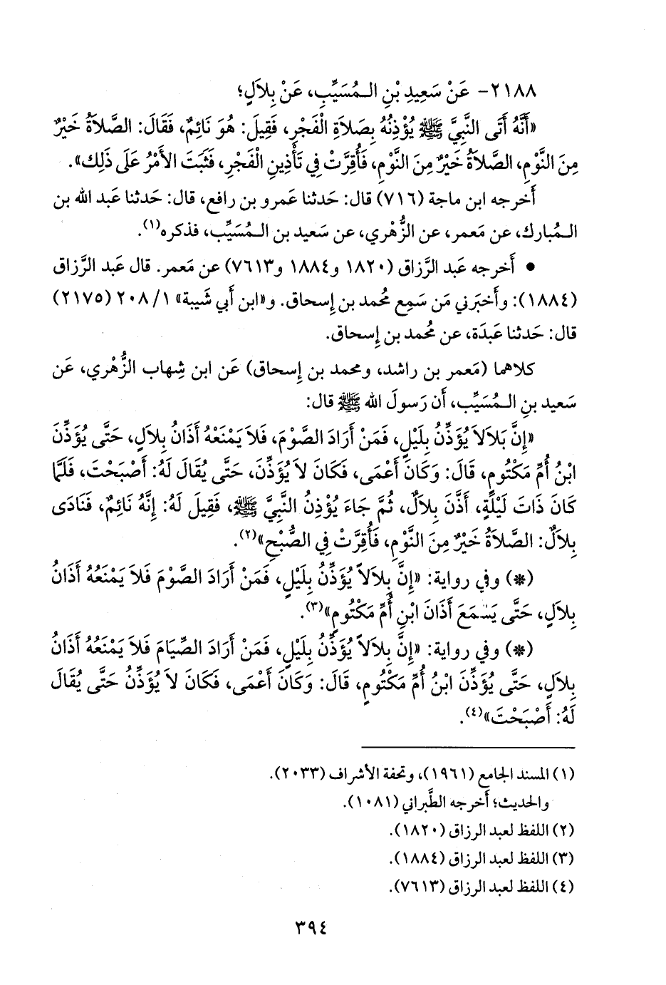 ٢١٨٨ - عن سعيد بن المُسَيب، عن بلال؛