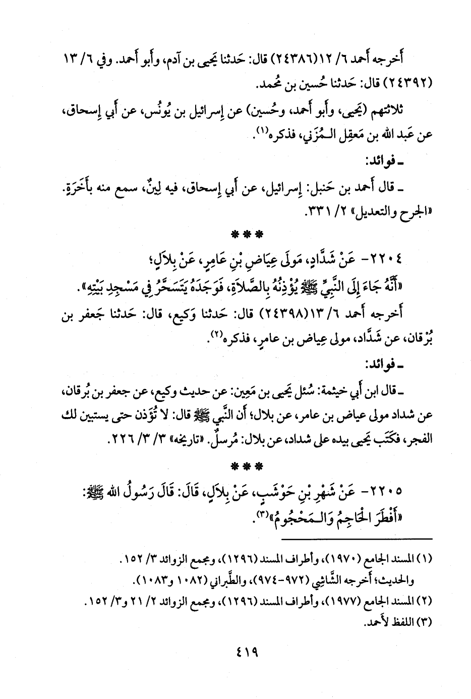 ٢٢٠٤ - عن شداد مولى عياض بن عامر، عن بلال؛
