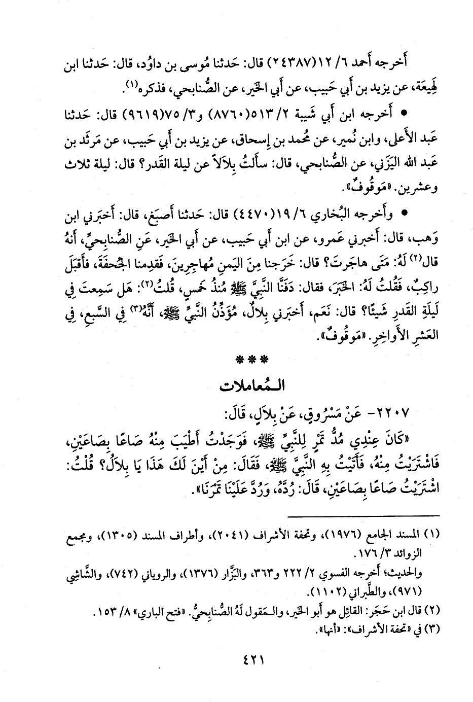 ٢٢٠٧ - عن مسروق، عن بلال، قال: