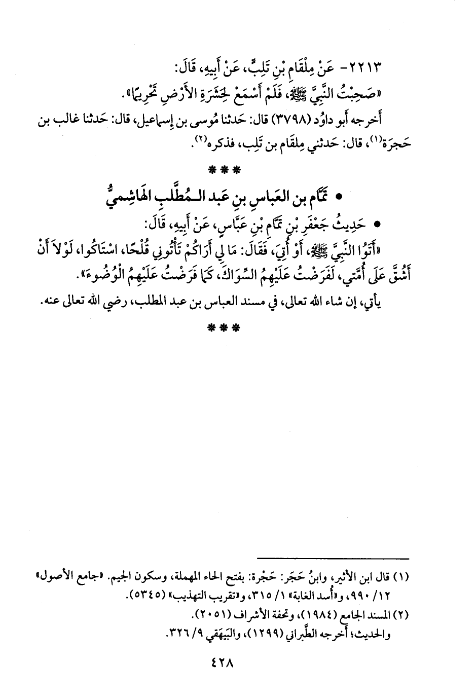 (¬١) قال ابن الأثير، وابن حجر: حجرة: بفتح الحاء المهملة، وسكون الجيم. «جامع الأصول» ١٢/ ٩٩٠، و «أسد الغابة» ١/ ٣١٥، و «تقريب التهذيب» (٥٣٤٥).