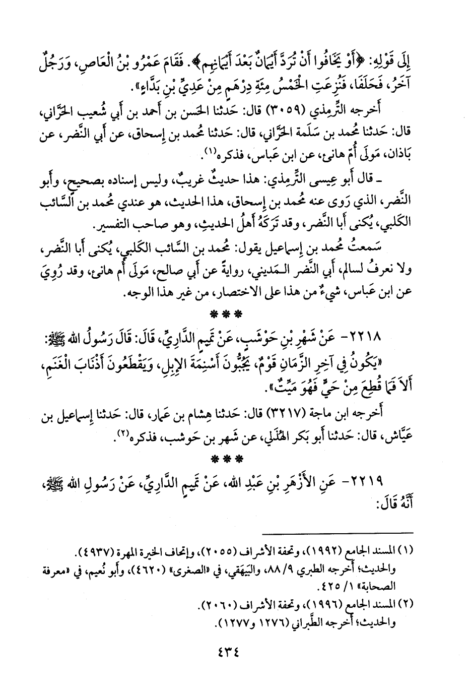 ٢٢١٨ - عن شهر بن حوشب، عن تميم الداري، قال: قال رسول الله صَلى الله عَليه وسَلم: