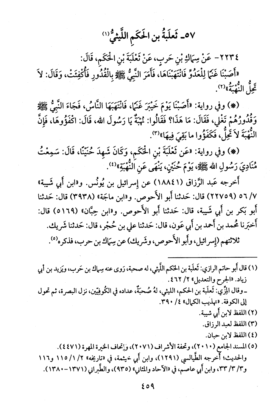 (¬١) قال أَبو حاتم الرازي: ثعلبة بن الحكم الليثي، له صحبة، روى عنه سماك بن حرب، ويزيد بن أبي زياد. «الجرح والتعديل» ٢/ ٤٦٢.