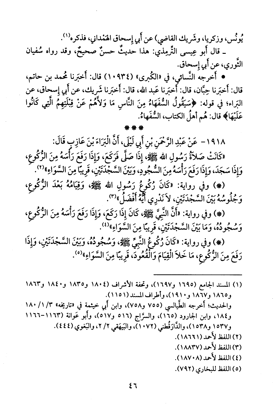 ١٩١٨ - عن عبد الرَّحمَن بن أبي ليلى، أن البراء بن عازب قال: