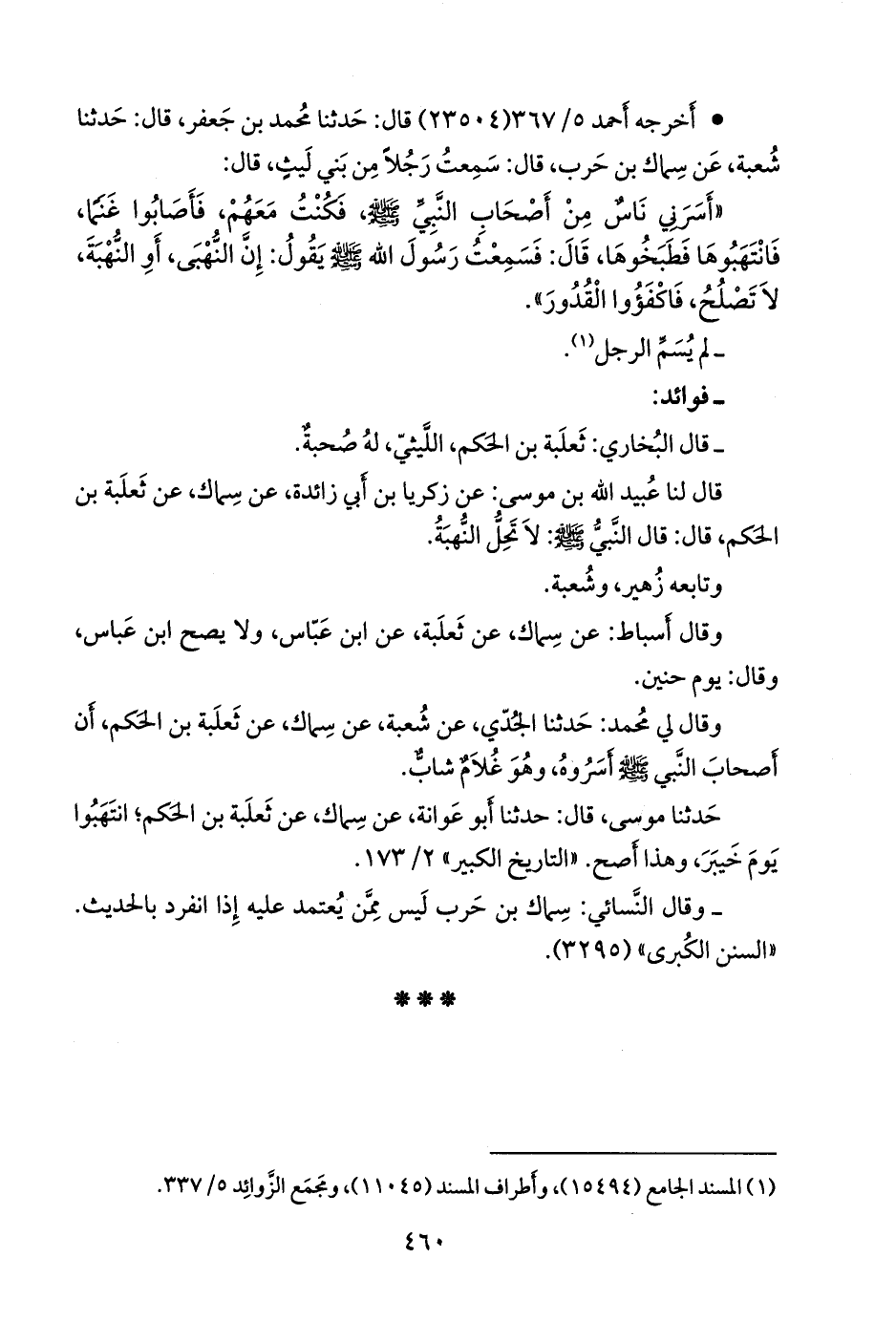 قال لنا عُبيد الله بن موسى: عن زكريا بن أبي زائدة، عن سِمَاك، عن ثعلبة بن الحكم، قال: قال النبي صَلى الله عَليه وسَلم: لا تحل النهبة.