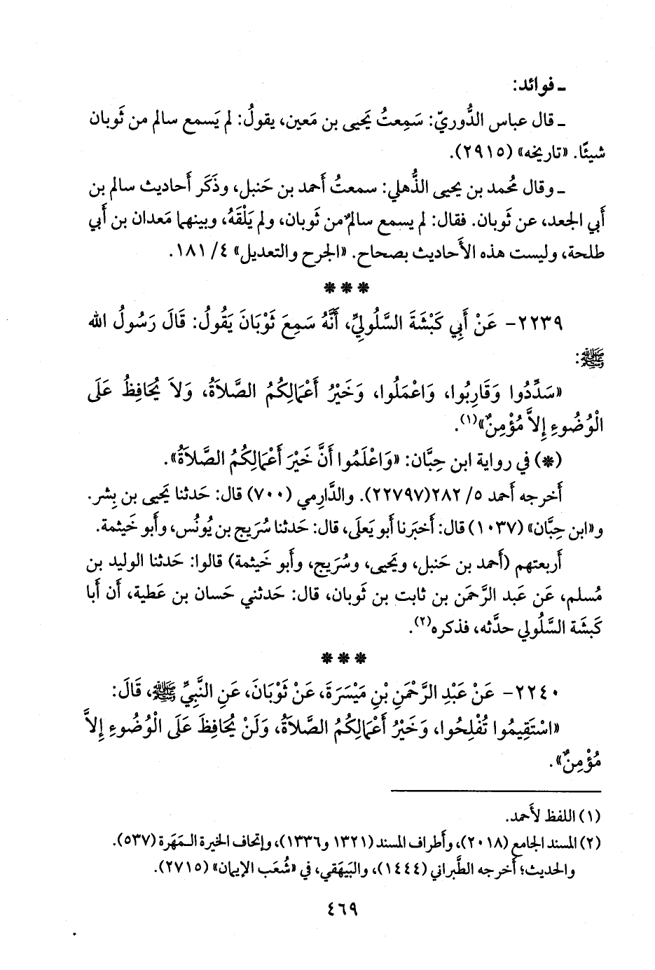 ٢٢٤٠ - عن عبد الرَّحمَن بن ميسرة، عن ثوبان، عن النبي صَلى الله عَليه وسَلم قال: